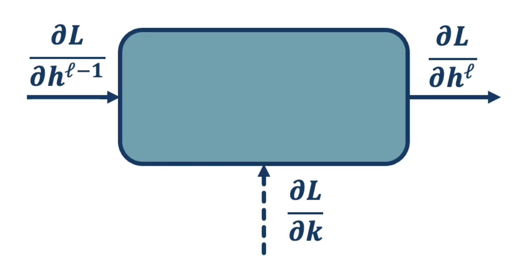 - Local Gradient w.r.t. Kernel $\frac{\partial{h_{\ell}}}{\partial{k}}$ to update our kernel weights, and
