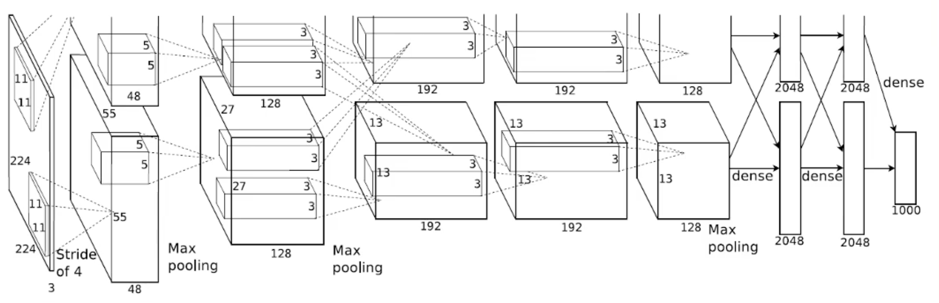 - AlexNet (2012): groundbreaking CNN created by Alex Krizhevsky, Ilya Sutskever, and Geoffrey Hinton.