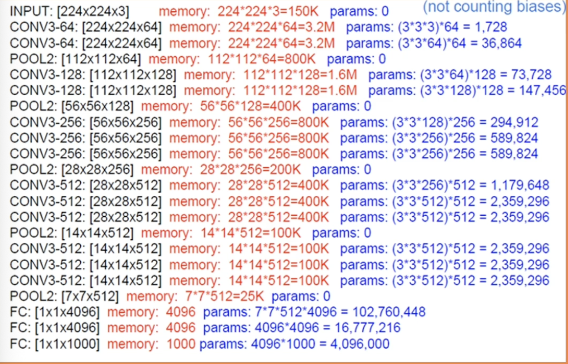 - Defining Characteristics: repeated “blocks” of sequential convolutional layers (ex: CONV3 $\rightarrow$ CONV3 $\rightarrow$ CONV3, with 3 being the kernel size). Deeper versions of VGG (ex: VGG-19) have more blocks.