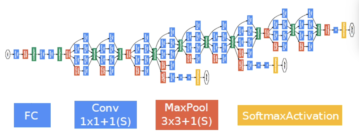 - Architecture: parallel convolutional blocks separated by pooling layers, with final fully-connected layer.