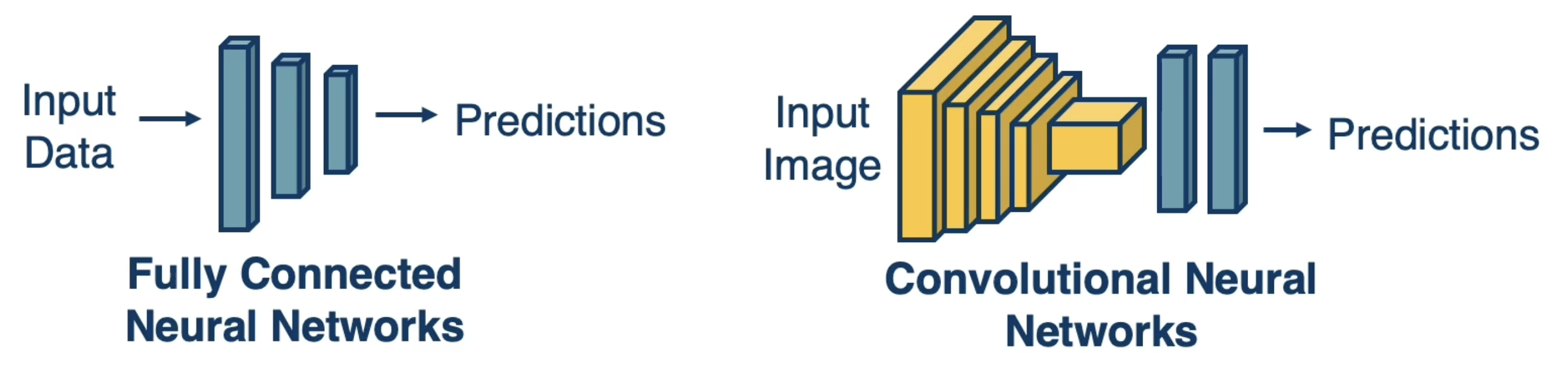 - Convolutional Neural Networks (CNNs): utilize convolutional and pooling layers, which do not involve dense mappings between every pairing of input and output nodes.