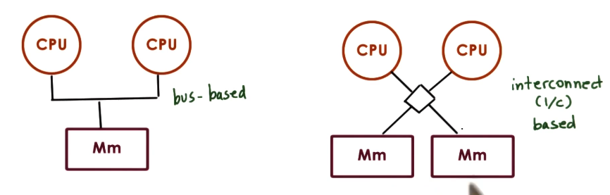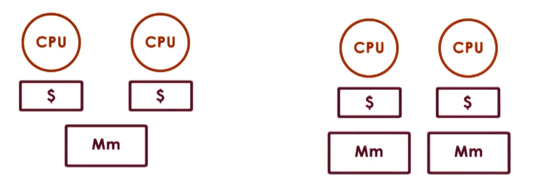 Recall that a Shared Memory Multiprocessor (SMP) consists of multiple CPUs, and some shared memory region which is accessible across CPUs. There may be one or many shared memory components.