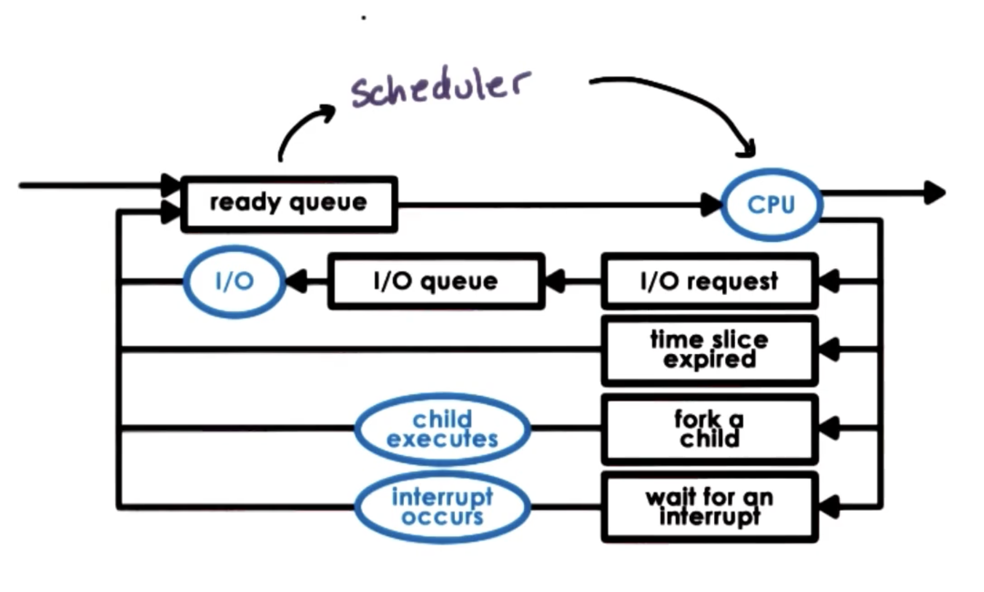 - Preemptive Scheduling: alternative framework where tasks may be interrupted (typically based on timeslices).
