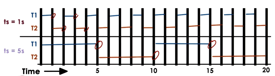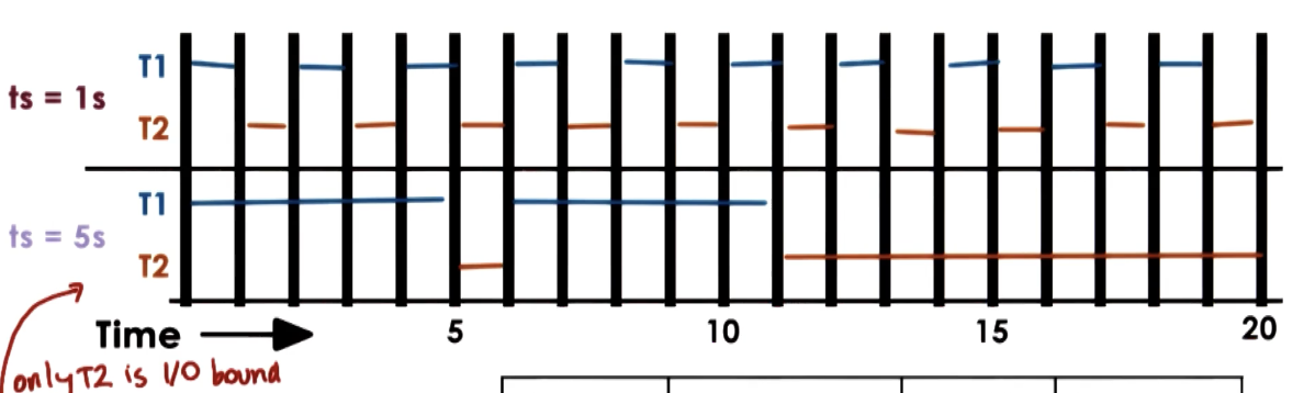 - Timeslice Value: small for low priority, large for high priority.