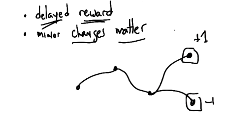 This formulation is in contrast to supervised learning, where every state would have a correct action with immediate “reward” (e.g., whether the predicted action is correct).