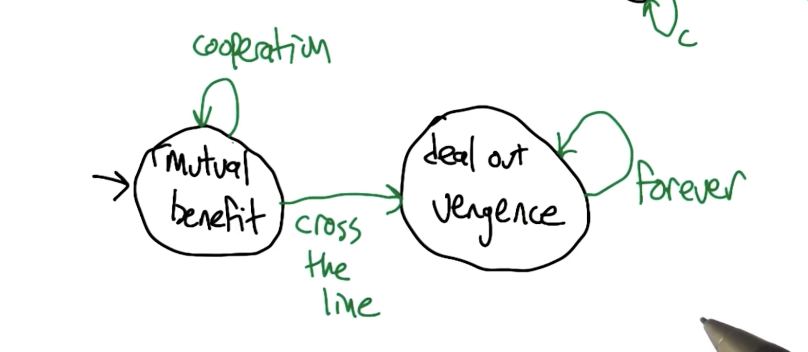 The expected number of trials $n$ is therefore $\frac{1}{1 - \gamma}$. Tit-for-Tat is a famous iterated prisoner’s dilemma (IPD) strategy which involves the following: