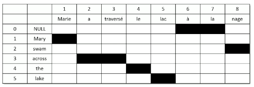 - Word Alignment: every source word $s_i$ is aligned to one target word (including NULL) $t_j$ such that $a_i = j$.