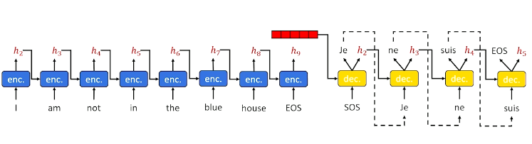 Unfortunately, vanilla RNNs / LSTMs generate terms in a sequential (left-to-right fashion). This is not always appropriate in the case of translation, where we may need to perform word re-ordering / re-selection depending on future terms in the source language. Instead, Sequence-to-Sequence (seq2seq) networks are more appropriate for this application. Recall that seq2seq networks follow an encoder-decoder neural architecture, where the encoder iteratively processes every term in the source to generate some final informative hidden state. This implies the hidden state passed to the decoder for generation will have access to all semantic information in the source sequence.