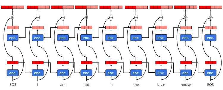 Still, basic seq2seq networks encode in a sequential left-to-right fashion. Since translation involves reordering, we may want to also have right-to-left context in order to have a more comprehensive representation of semantic meaning. Bidirectional seq2seq models generate two sets of hidden states as part of the encoder: a set from left-to-right, and a set from right-to-left. The final hidden state for each time step is the concatenation of the corresponding left-to-right and right-to-left hidden states.
