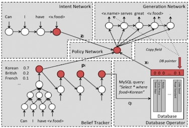 - Belief Tracker: maps user utterance to distribution of values. Beliefs are typically per-slot, meaning we have a probability assigned to each belief slot.